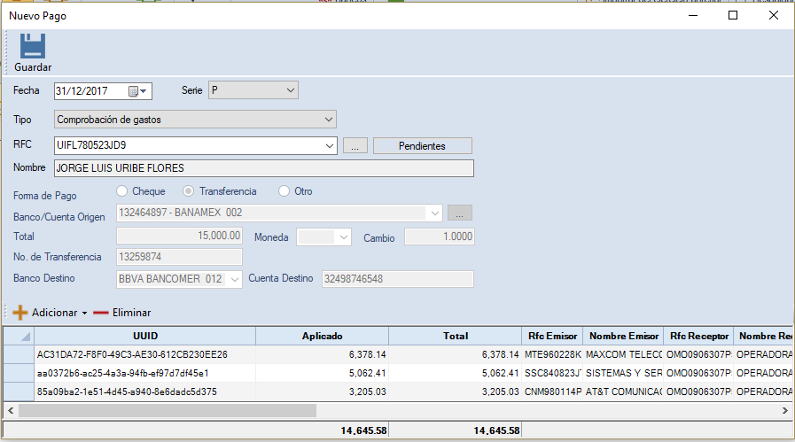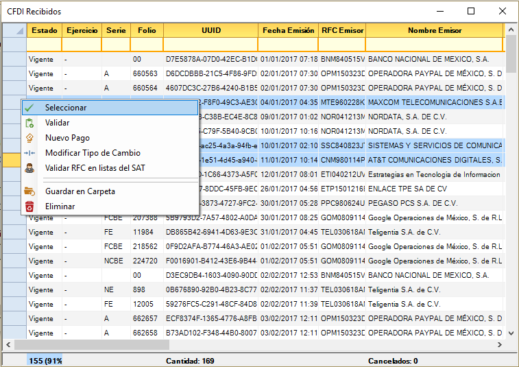Una vez seleccionadas da clic con botón derecho y elige "Seleccionar". Aparecerán las facturas seleccionadas: