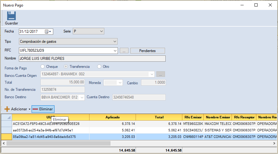 Para eliminar alguna factura deberás seleccionarla y dar clic en "Eliminar".