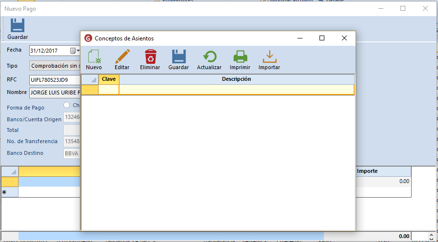 Adicionalmente si das clic en el cuadro de tres puntos que está a la derecha del concepto te mostrará un catálogo de conceptos que podrás capturar y guardar para usarlos en otro momento.