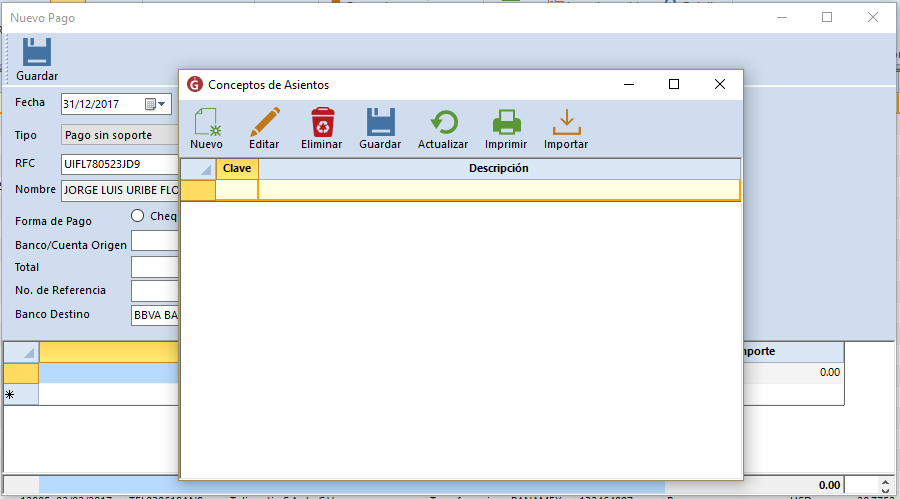 Para adicionar el o los conceptos del pago sin soporte de un gasto da doble clic en el renglón del área de "Concepto". Se habilitará para que puedas capturar el concepto correspondiente.