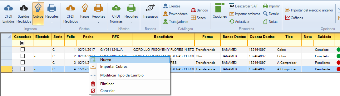 Captura la fecha del cobro. Es importante la captures correctamente ya que no puede ser editada.