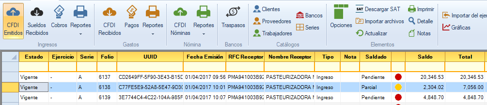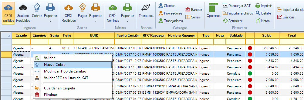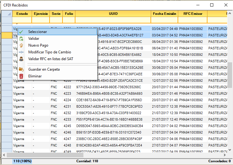 Una vez seleccionadas da clic con botón derecho y elige "Seleccionar". Aparecerán las facturas seleccionadas: