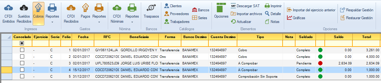 Captura la fecha del cobro. Es importante la captures correctamente ya que no puede ser editada.