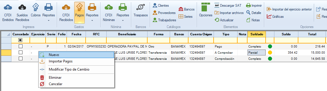 Captura la fecha del pago. Es importante la captures correctamente ya que no puede ser editada.