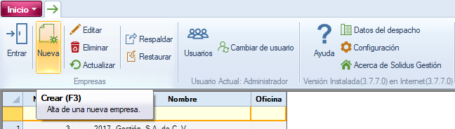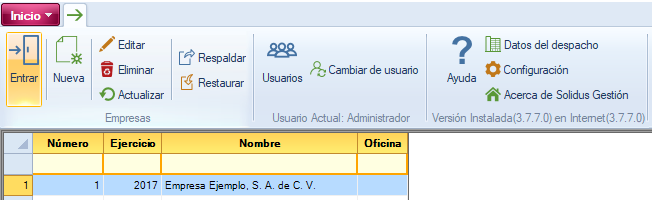 Para entrar a la empresa existen tres formas: presionando dos veces sobre ella con el mouse. O dar clic con el botón derecho del mouse y elegir “Entrar” y la última presionando el icono de “Entrar”.