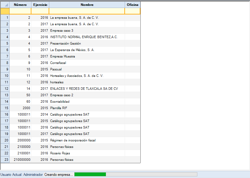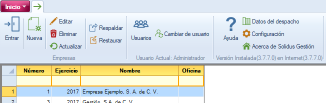 Al concluir el proceso la empresa se presenta en la pantalla inicial: