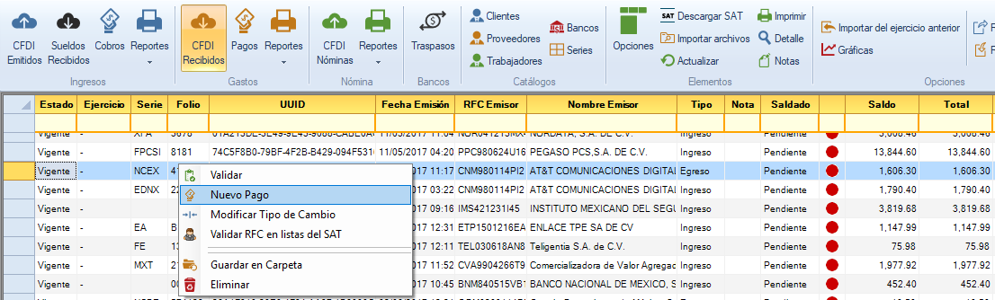 Selecciona la nota de crédito a la que deberás aplicar la devolución . Da clic en el botón "Nuevo Pago".