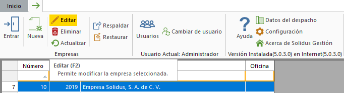 En "Inicio" selecciona la empresa que desas editar y da clic en el botón "Editar".
