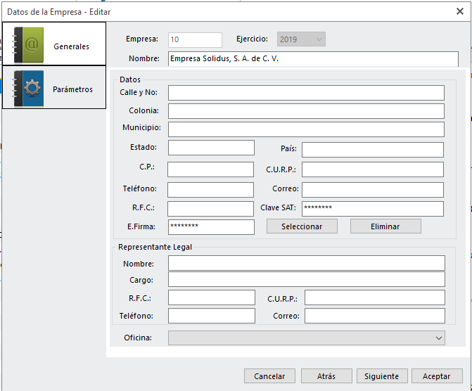 Cambia ciertos parámetros, definidos al momento de crear la empresa.