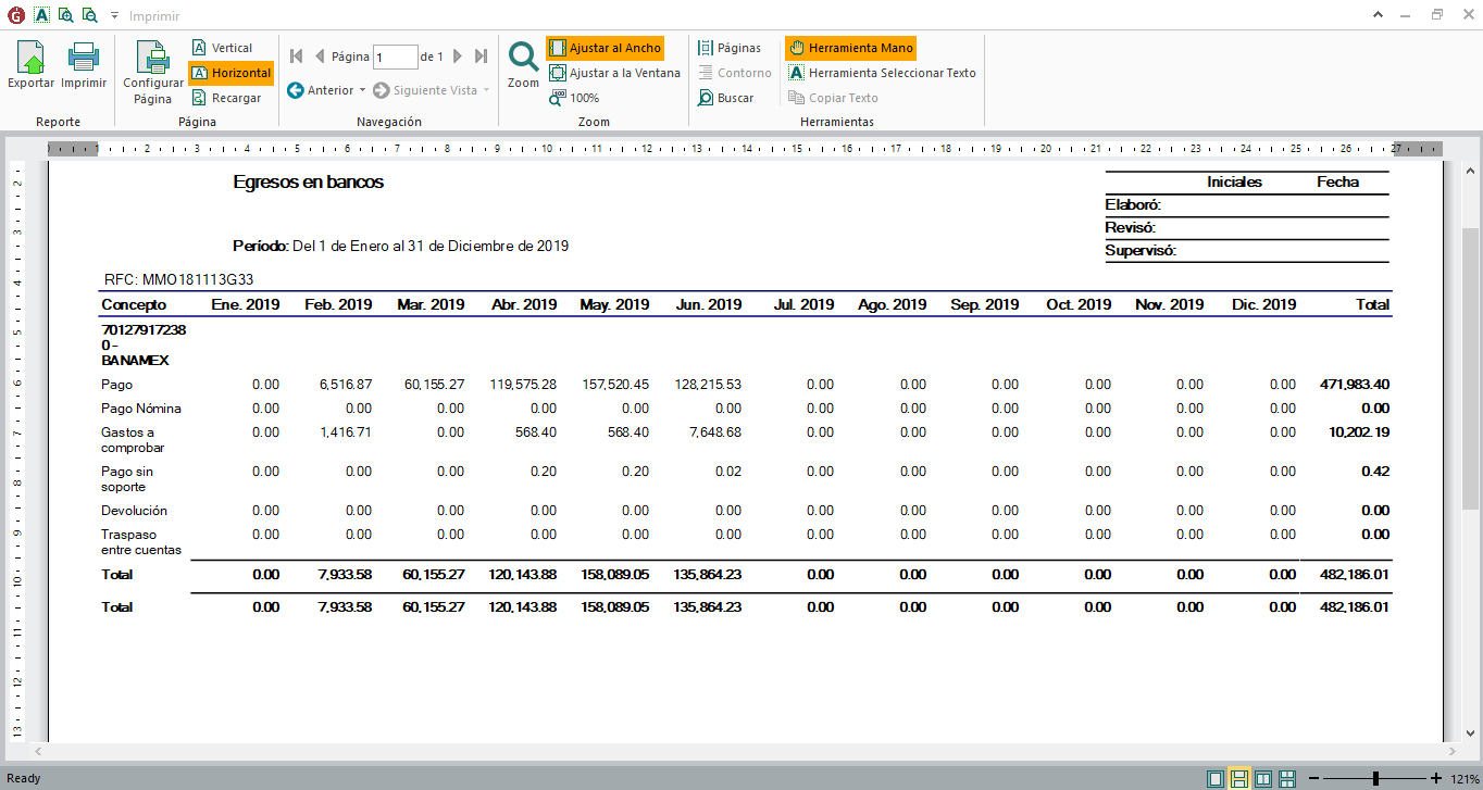 Para salir de la visualización del reporte da clic en la "X" que está en la parte superior derecha.