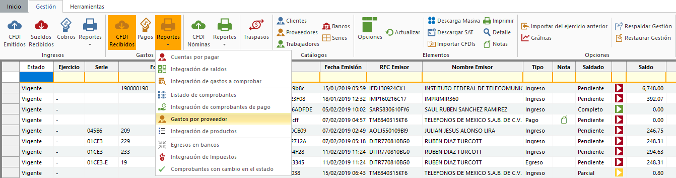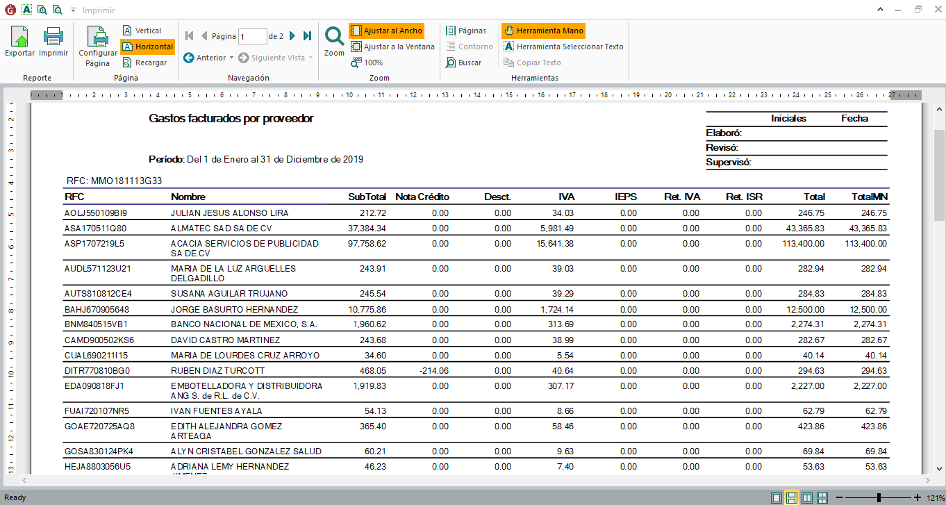 Si no deseas imprimir, gastos por proveedor de otro RFC, cierra la ventana o da clic en el botón "Cancelar".