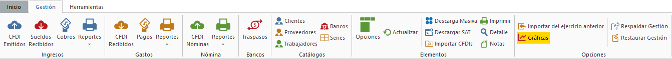 Con esta opción podrás observar, gráficamente, las facturas de ingresos y egresos. Da clic en "Gráficas".