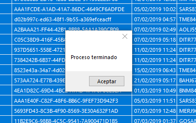 Al concluir te mostrará "Proceso terminado", da clic en "Aceptar".