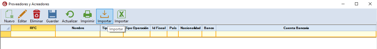 Con esta opción podrás importar, desde otra empresa, el catálogo de proveedores. Da clic sobre el botón "Importar":