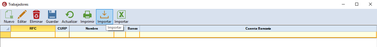 Con esta opción podrás importar, desde otra empresa, el catálogo de trabajadores. Da clic sobre el botón "Importar":