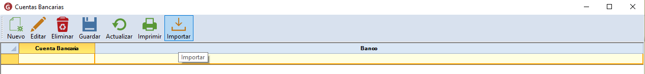 Con esta opción podrás importar, desde otra empresa, el catálogo de bancos. Da clic sobre el botón "Importar":