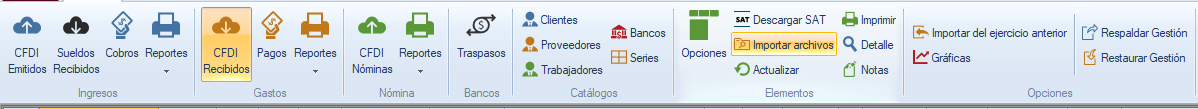 Importa las facturas electrónicas desde una carpeta, asegúrate de tener el 100% de CFDI. No es necesario estén ordenadas y separadas por tipo o fechas. La importación colocará en el apartado correspondiente cada una de ellas.