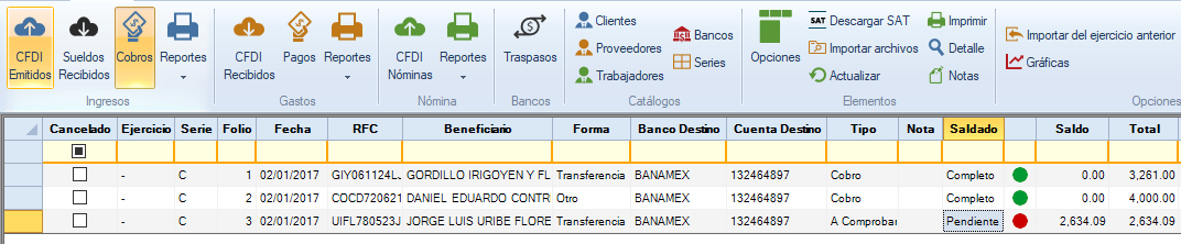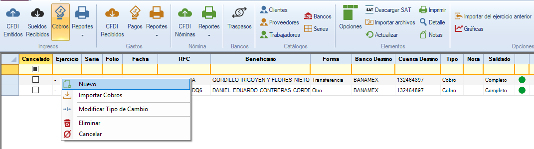 Captura la fecha del cobro. Es importante la captures correctamente ya que no puede ser editada.