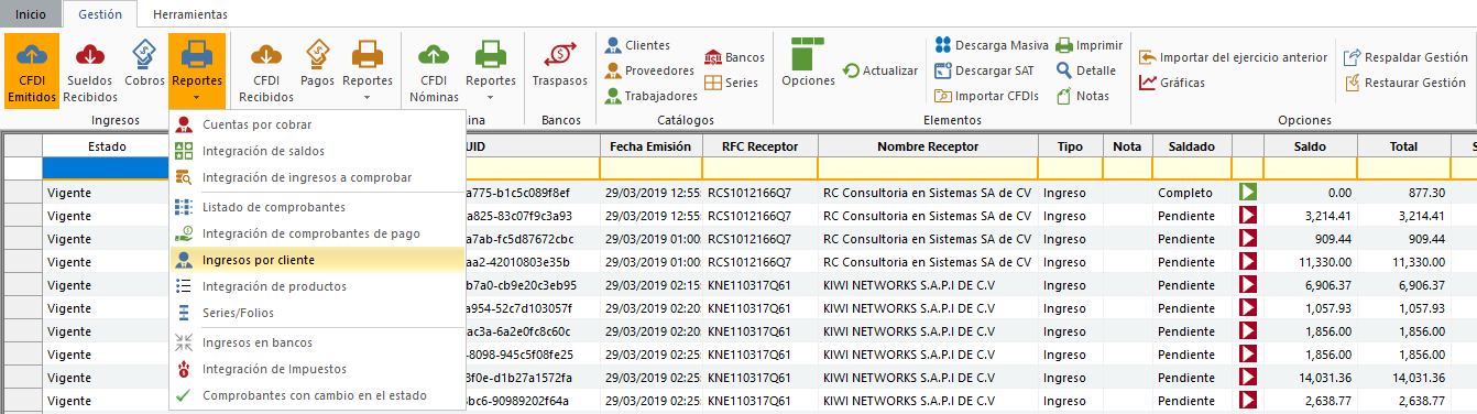 En ingresos da clic en "Reportes" y selecciona "Ingresos por cliente".