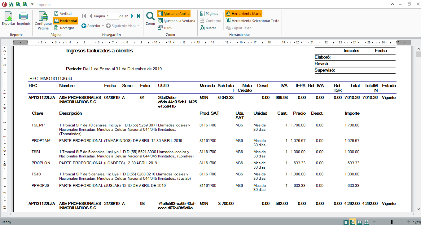 Si no deseas imprimir, ingresos por cliente de otro RFC, cierra la ventana o da clic en el botón "Cancelar".
