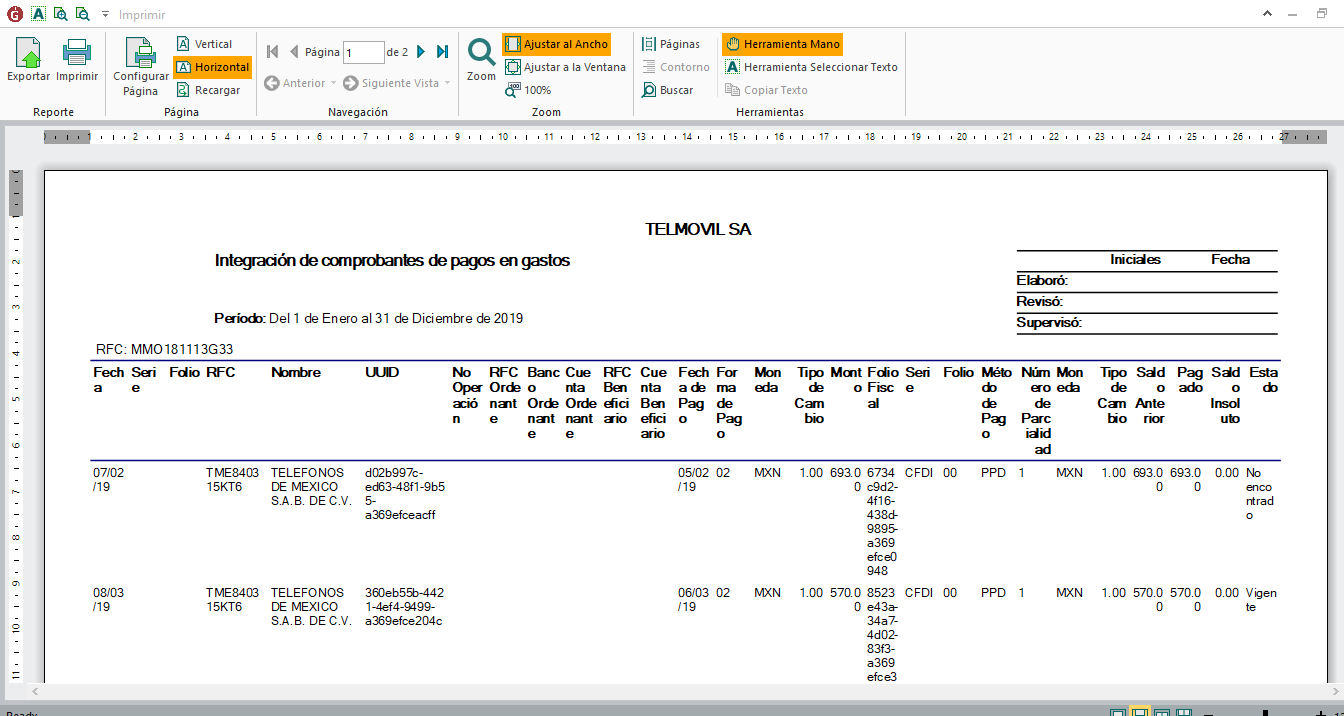 Si no deseas imprimir, la integración de comprobantes de pago de otro RFC, cierra la ventana o da clic en el botón "Cancelar".