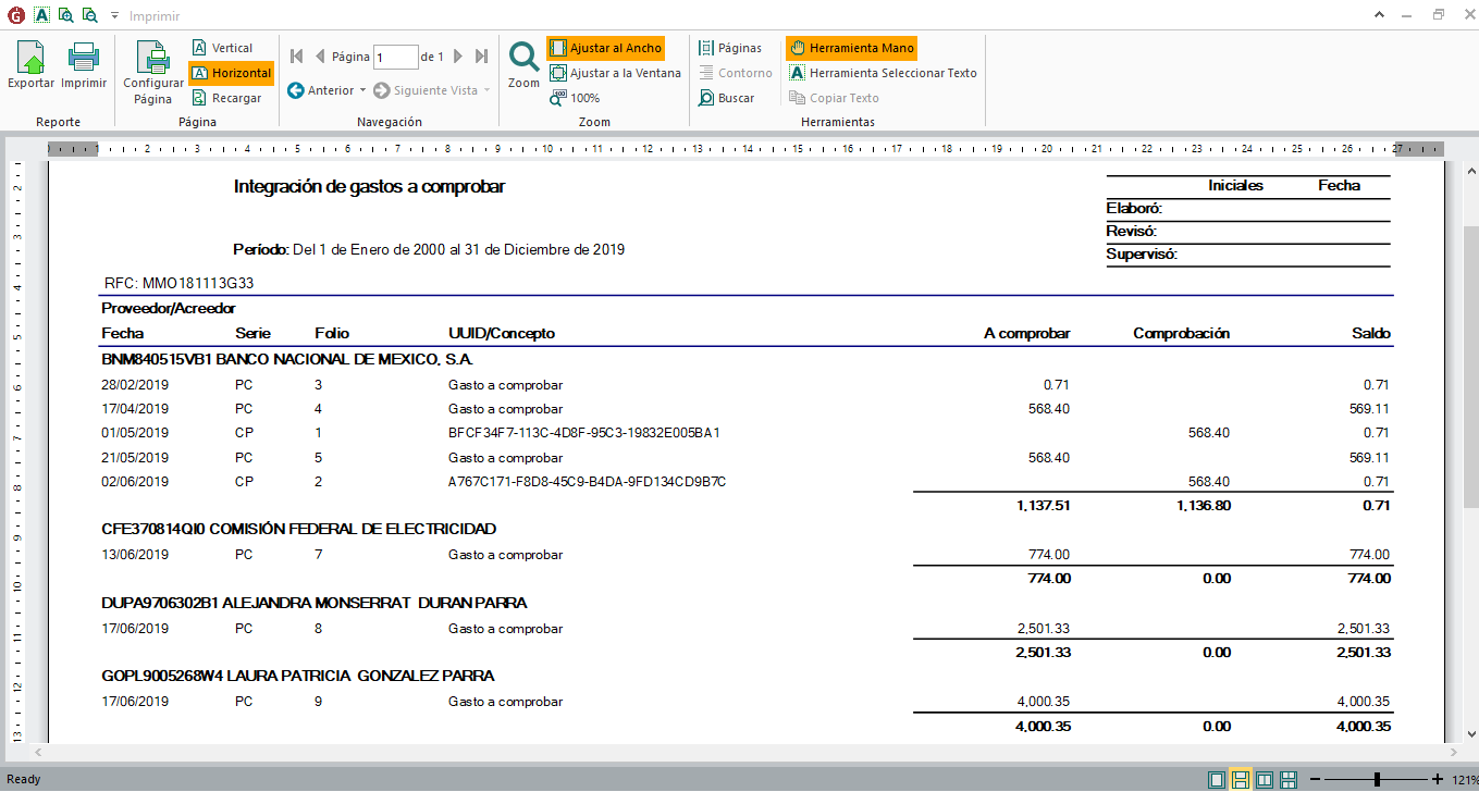 Si no deseas imprimir, integración de gastos a comprobar de otro RFC, cierra la ventana o da clic en el botón "Cancelar".