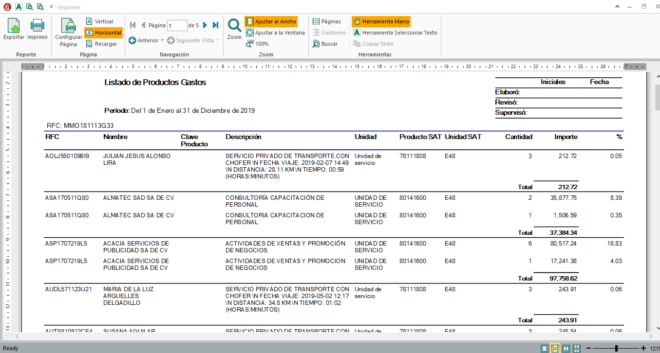 Para salir de la visualización del reporte da clic en la "X" que está en la parte superior derecha.