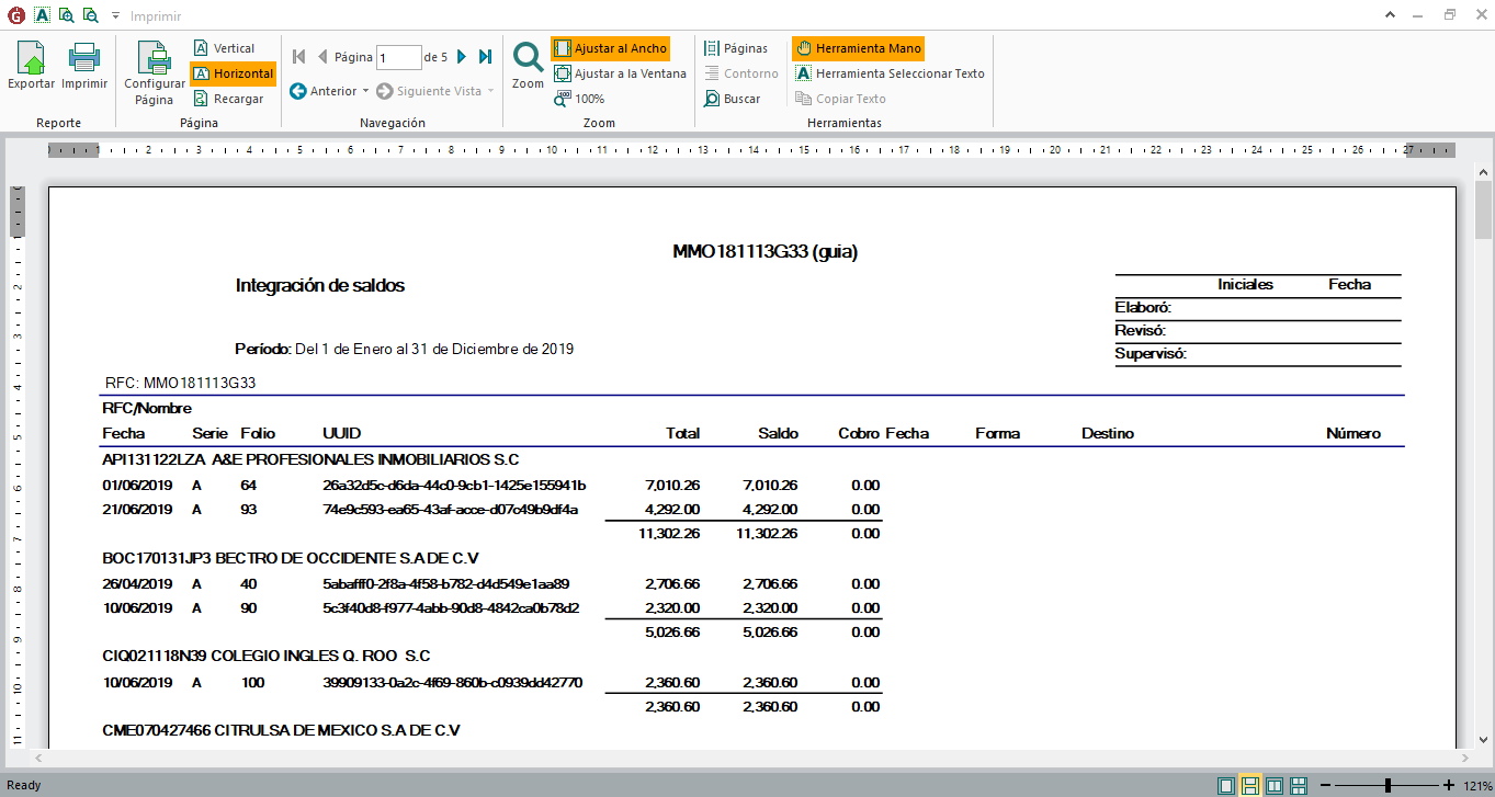Si no deseas imprimir, la integración de saldos de otro RFC, cierra la ventana o da clic en el botón "Cancelar".