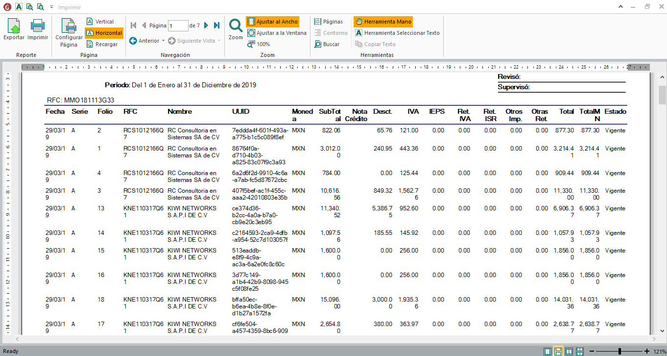 Para salir de la visualización del reporte da clic en la "X" que está en la parte superior derecha.