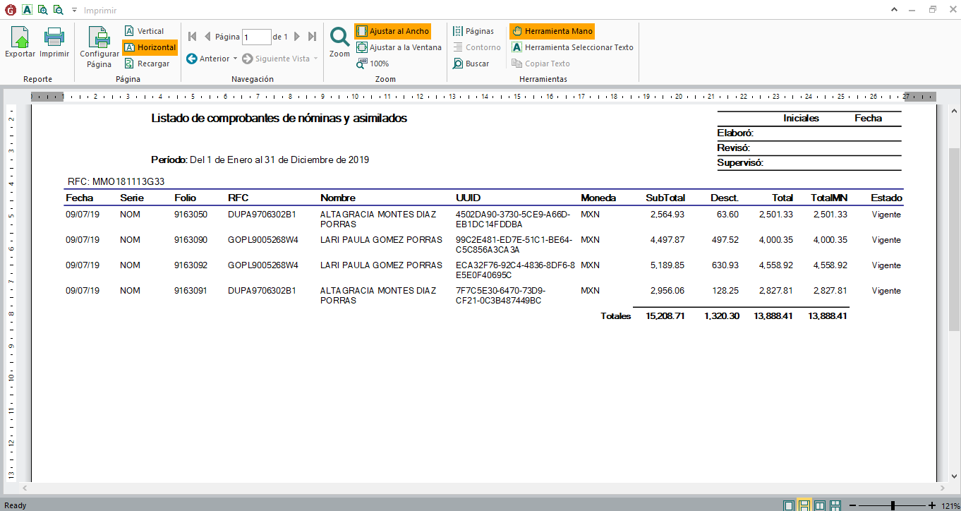 Para salir de la visualización del reporte da clic en la "X" que está en la parte superior derecha.