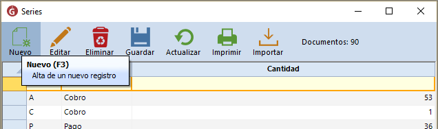 Para crear un nuevo registro da clic en "Nuevo":