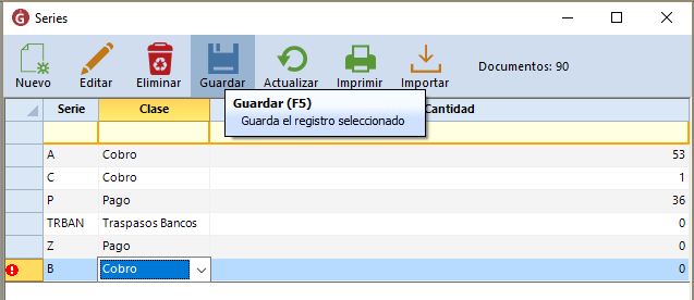Se habilitará un renglón en la parte de abajo. Coloca la serie y la clase que corresponda. Para finalizar da clic en "Guardar":