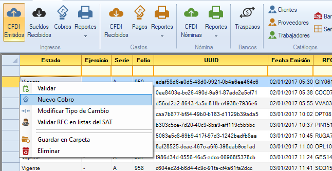 Selecciona la factura que deseas cobrar. Da clic en el botón "Nuevo Cobro".