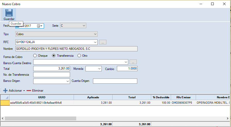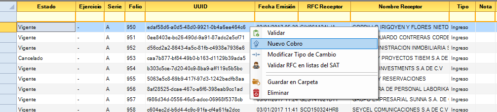 Selecciona la factura a cobrar, si estas en el apartado ingresos, o a pagar, si estas en el apartado egresos, y da clic sobre ella para cobrarla o pagarla.