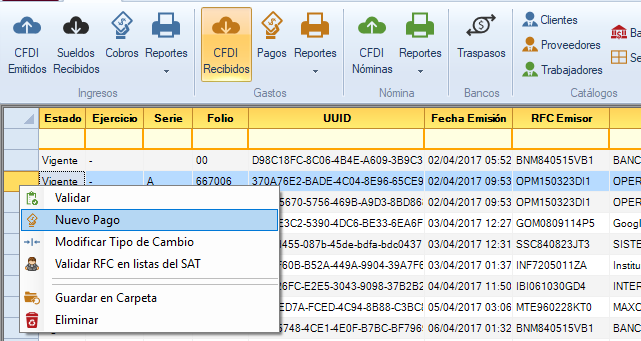 Selecciona la factura que deseas cobrar. Da clic en el botón "Nuevo Cobro".