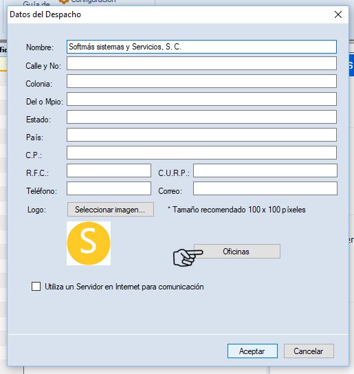 Las oficinas o sucursales permiten agregar su propia información general y logotipo. Para darlas de alta da clic en "Datos del Despacho", que se encuentra en "Inicio", para entrar a configurar la información general.