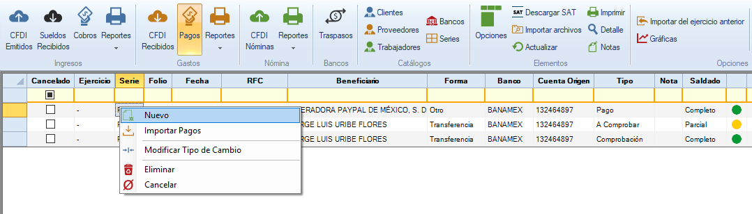 Captura la fecha del pago. Es importante la captures correctamente ya que no puede ser editada.