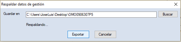 Indica la ruta para guardar el archivo. Se deberá hacer directamente en el equipo donde está instalado el sistema, ya sea en su mismo disco duro local o externo. No realices el respaldo directamente a dispositivos USB, unidades de red, o carpetas de la nube, porque podría perder sincronización en algún momento y se dañaría la información.