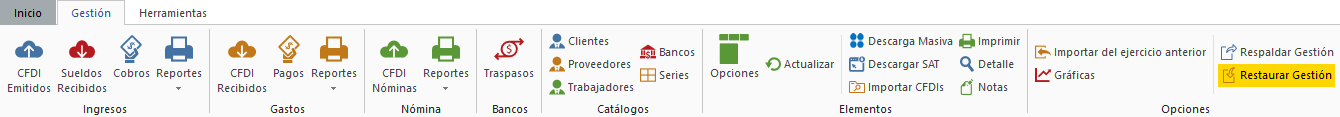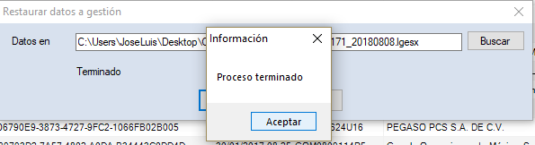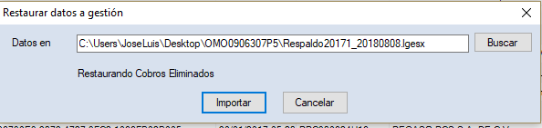 Esta es la forma correcta de interactuar con Solidus y Gestión. Observa que no es un respaldo de la empresa lo que se restaura, es un respaldo de la información referente a facturas, cobros, pagos y catálogos generado desde Solidus.