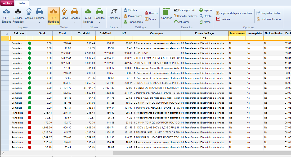 Se recomienda utilizar filtros para mostrar información específica de las facturas electrónicas.