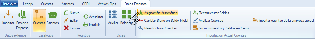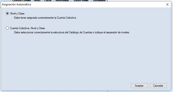 Con esta opción podrás obtener los niveles, clase y las cuentas control cuando el catálogo de cuentas importado no lo tenga. Da clic en "Asignación automática".