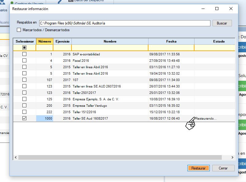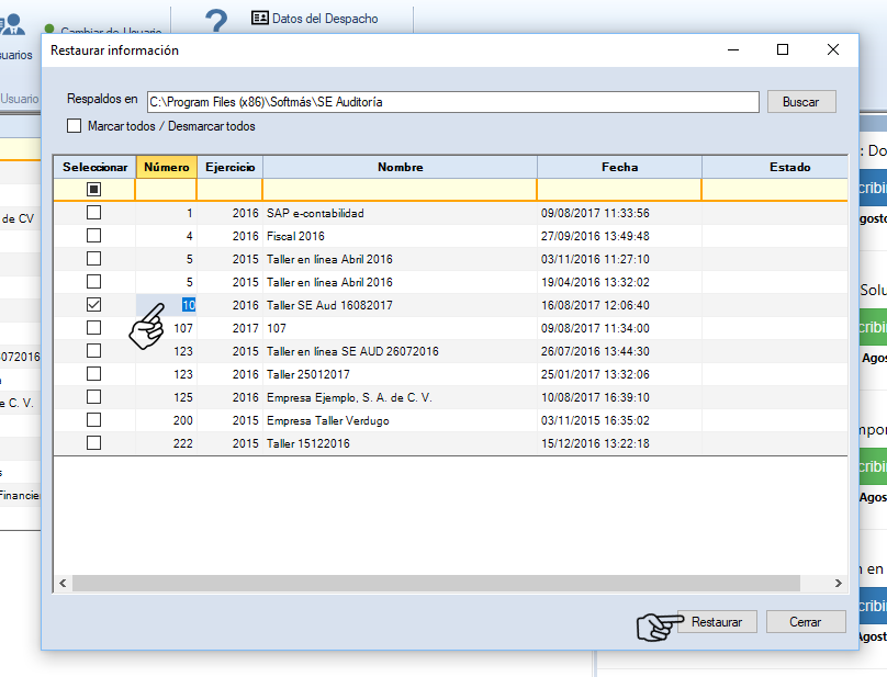 Captura el nuevo número de empresa y da un clic en "Restaurar".