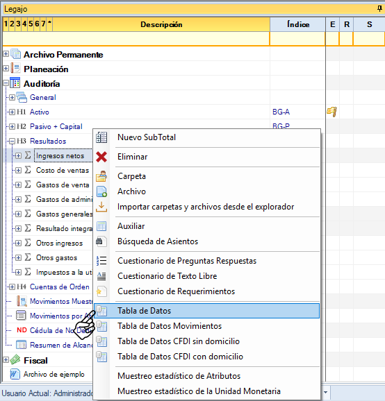 Para insertar una tabla de datos se deberá seleccionar el lugar donde se necesita. Da un clic con el botón derecho del mouse y selecciona del menú "Tabla de Datos".