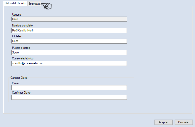 En ella se encuentra el listado de empresas que están dadas de alta en el sistema. Selecciona la empresa o empresas que podrá ver el usuario.