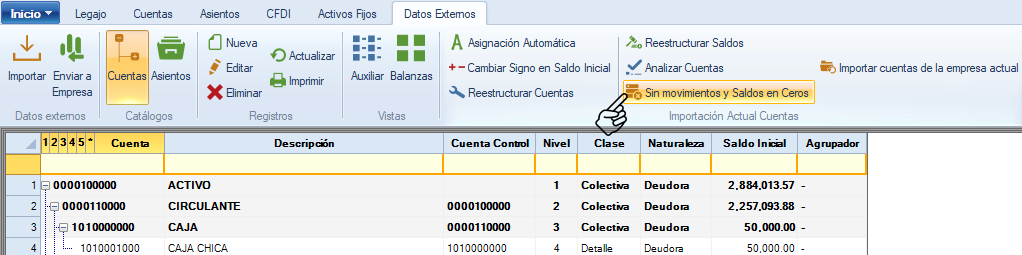 Al importar el 100% del catálogo de cuentas ahora se tienen cuentas que no tienen saldos ni movimientos en caso de querer eliminarlas se debe realizar el siguiente procedimiento: