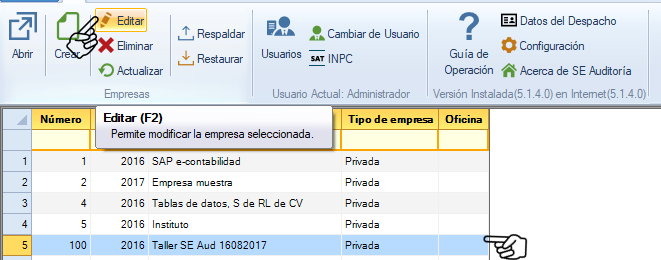 En "Inicio" selecciona la empresa que desas editar y da clic en el botón "Editar".