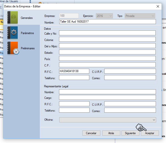 Realiza los cambios necesarios y da clic en "Aceptar" para guardar los cambios. Da clic aquí para cambiar el número de empresa, ya que es el único elemento que no se edita de esta forma.