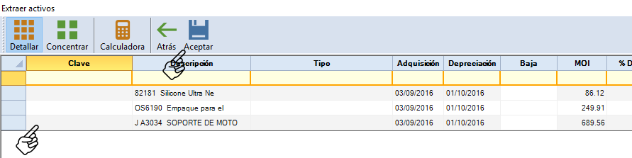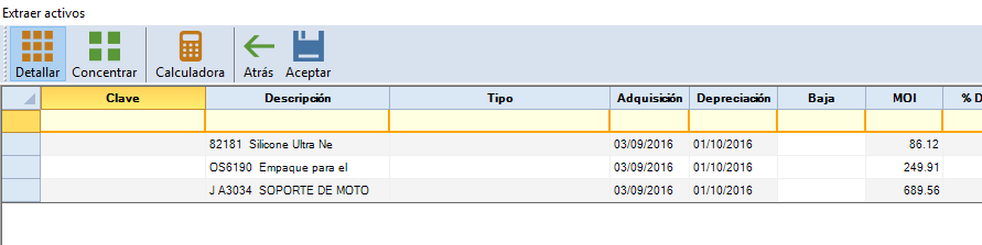 Deberás complementar la información de las columnas. Solo pon la "Clave" y complementa los datos al activo fijo que desees extraer.