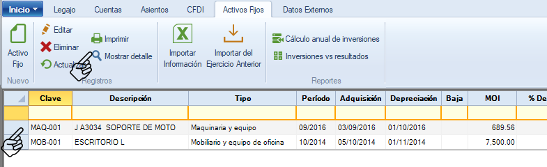Si al regresar al área de "Activos Fijos" no ves el activo nuevo da clic en "Actualizar" para refrescar la pantalla.