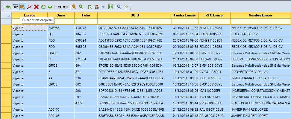Selecciona los XML que necesites guardar en una carpeta. Da clic en el botón "Guardar en carpeta".